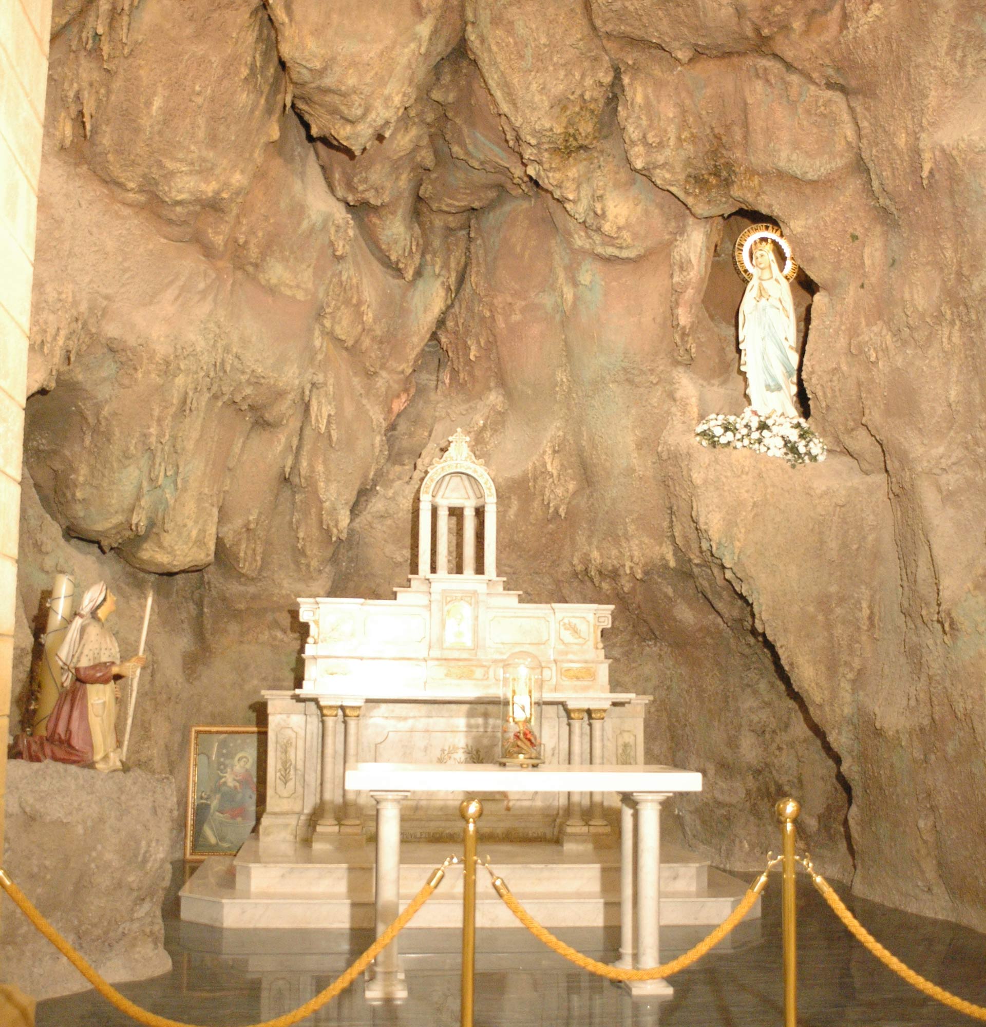 In May 1929, after a diocesan pilgrimage to the French town of Lourdes, a famous Marian devotion center, the doctor from Pulsano, Egidio Delli Ponti (1880-1949), miraculously healed from a malignant tumor located in the carotid area. Upon his return, Delli Ponti had an exact replica of the grotto at Massabielle, the place where the Virgin Mary appeared to fourteen-year-old Bernadette Soubirous (1844-1879) in February 1858, built at his own expense at the end of the left nave of the mother church.