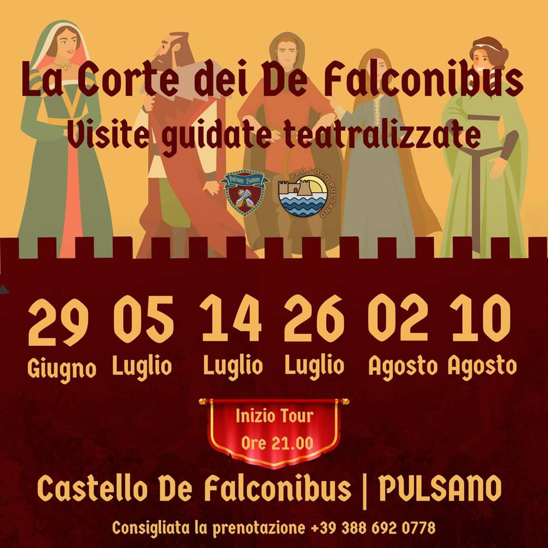 Nos dias 29 de junho, 5-14-26 de julho, 2 e 10 de agosto, pode experimentar uma visita imersiva e descobrir os segredos do Castelo De Falconibus como nunca antes. Sete encontros com figuras históricas que viveram no castelo, que o encontrarão em trajes medievais e lhe contarão uma das páginas mais sangrentas da história local de sempre.